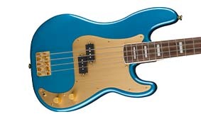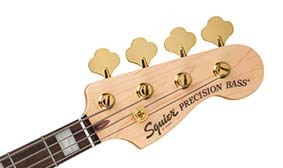 陽極氧化髮絲紋鋁合金的護板不但非常耐用,金色面板更美觀耐用。 | 採用Fender設計的復古音色拾音器,提供真實經典的音色。 | ||