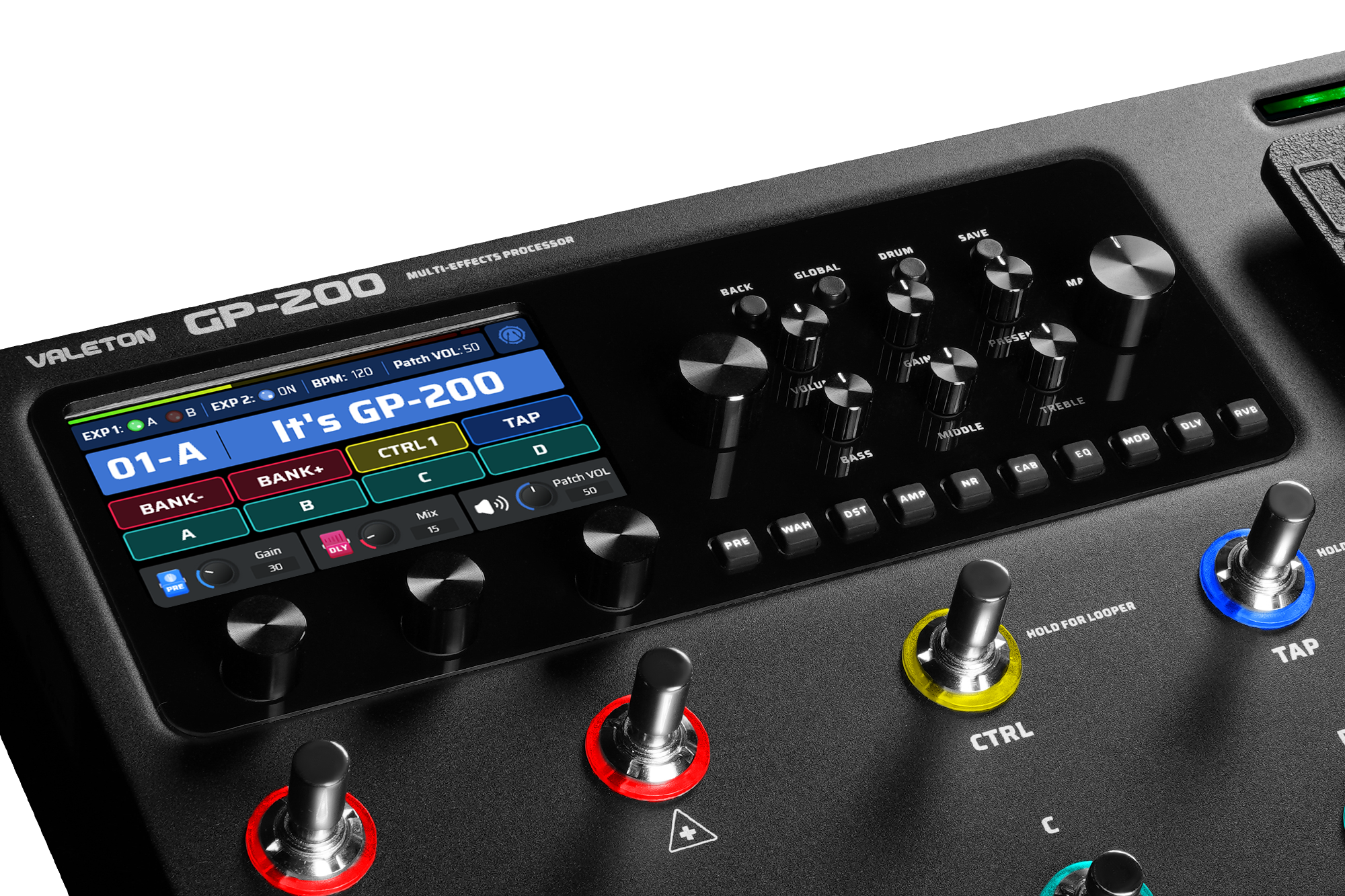 GP-200結合了140個傳奇功放和箱體模擬以及100個著名的stompbox效果踏板,再加上20個原廠的cab IR插槽,將保證你在舞台上始終保持良好的聲音。