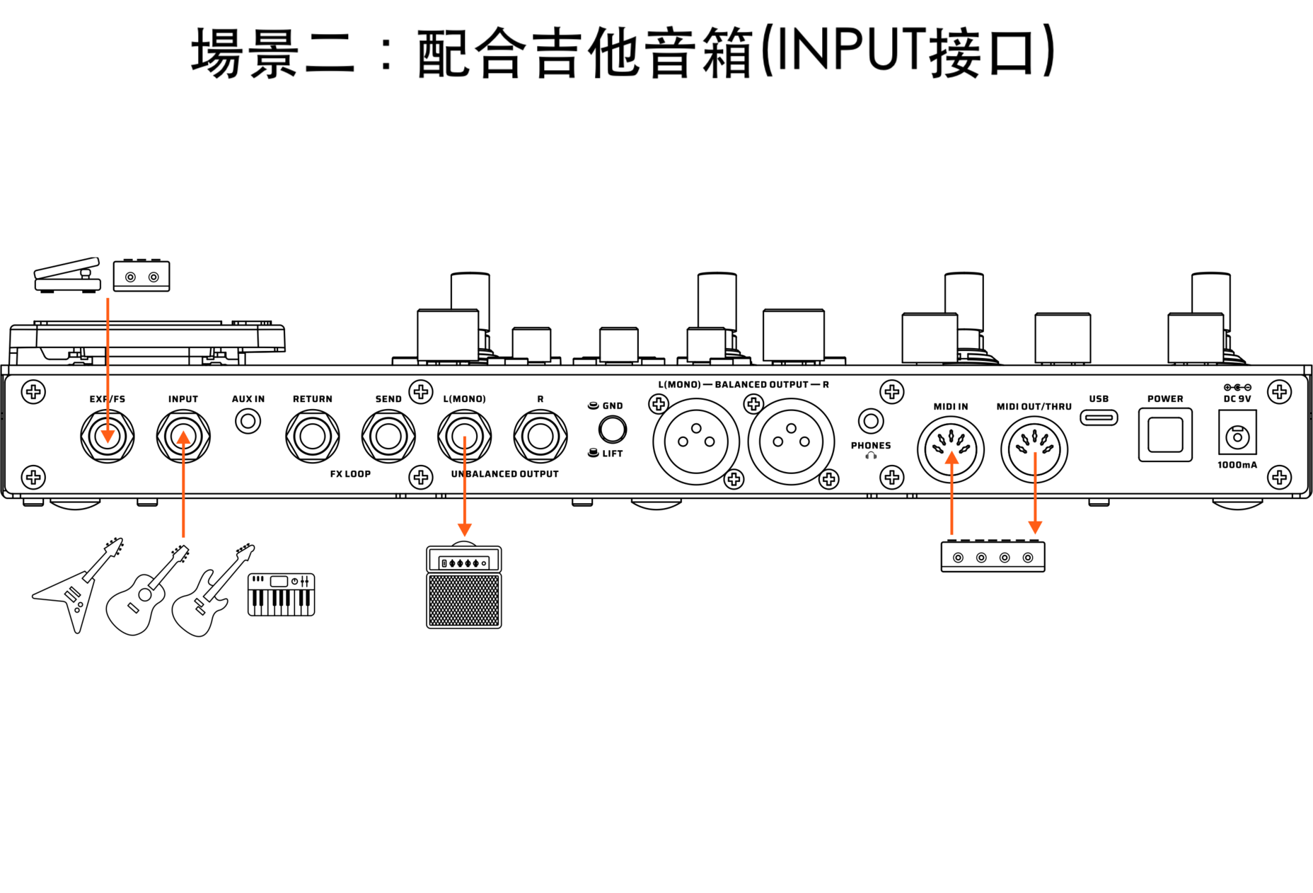 - 標準5-pin MIDI IN 及MIDIOUT/THRU 接口