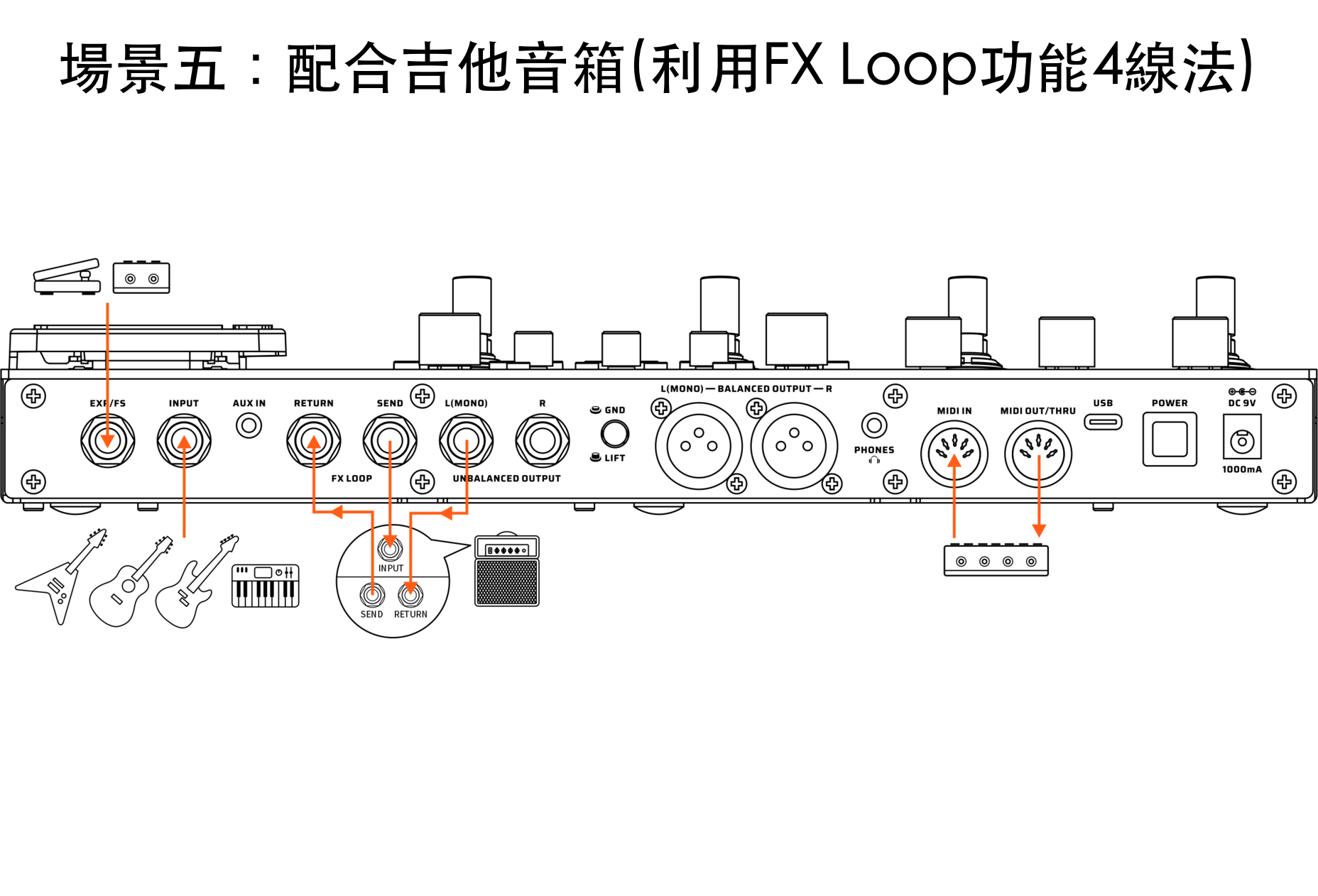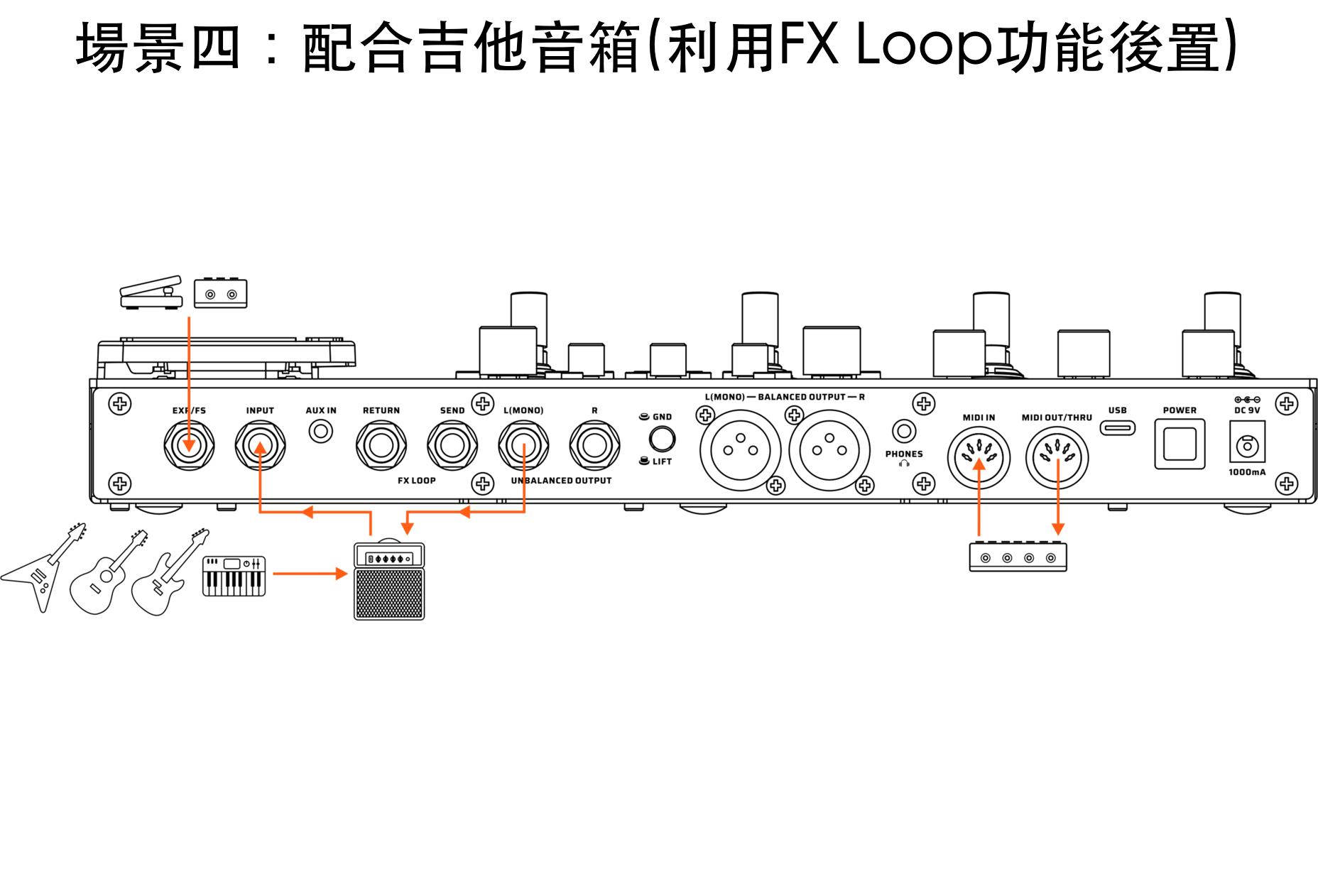 ● 效果鏈內11個模塊可同時使用,順序可自由設置