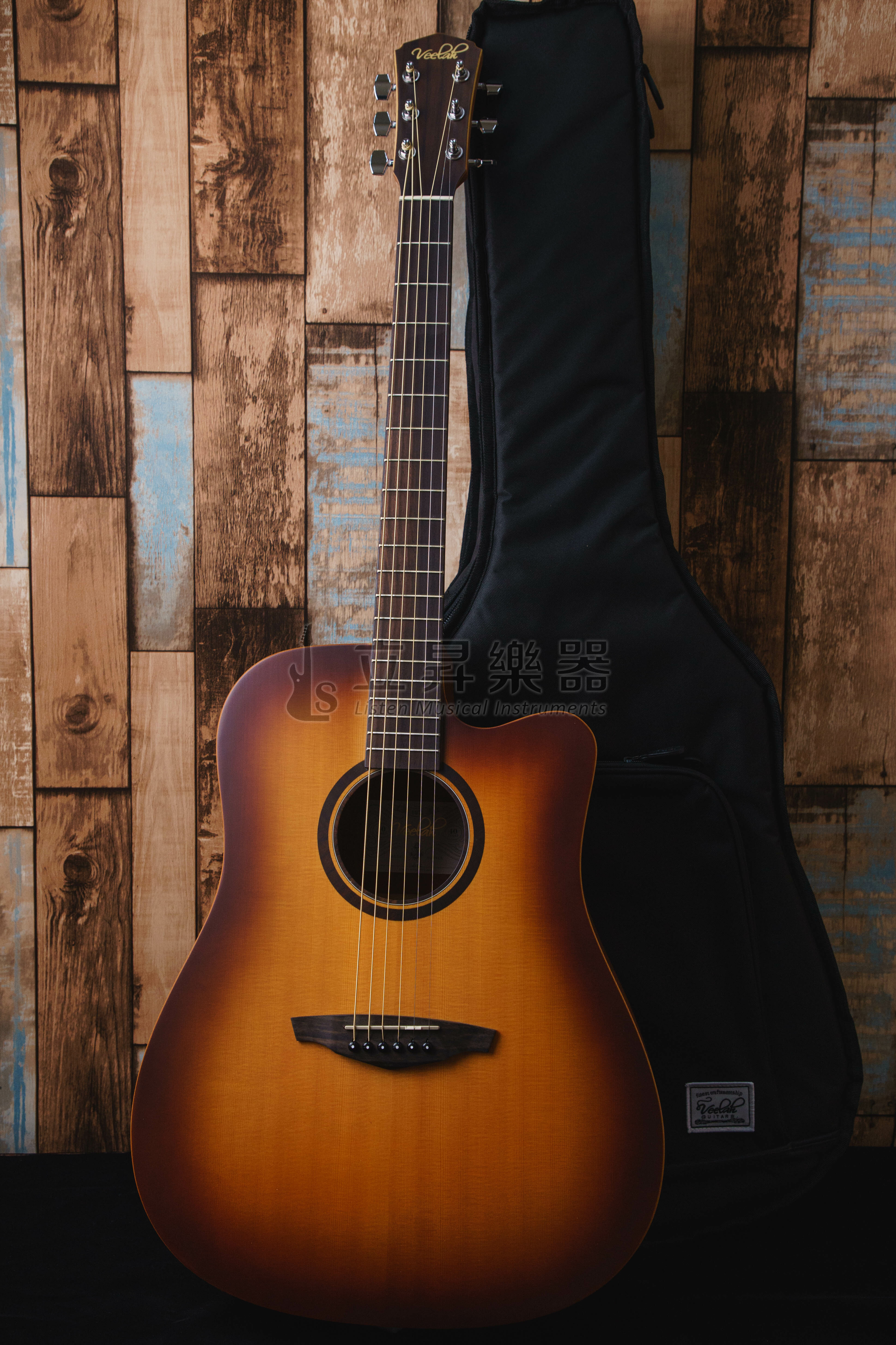 Veelah吉他使用的是全世界最優秀的板材,包括西堤卡雲杉、加拿大紅松、非洲桃花心木以及印度玫瑰木等,做工品質穩定,特別的是面單款式的側背板部分,加上款式多樣齊全,有不同的木頭配置、桶身、缺角/非缺角、插電與否、以及旅行吉他系列,足以滿足不同需求的玩家。尤其價格親民,在台灣的好評聲浪不斷,堪稱CP值最高的初中階琴首選!!如果你碰上一位吉他手說他的第一把琴是Veelah V1,那絕對不會是個意外!