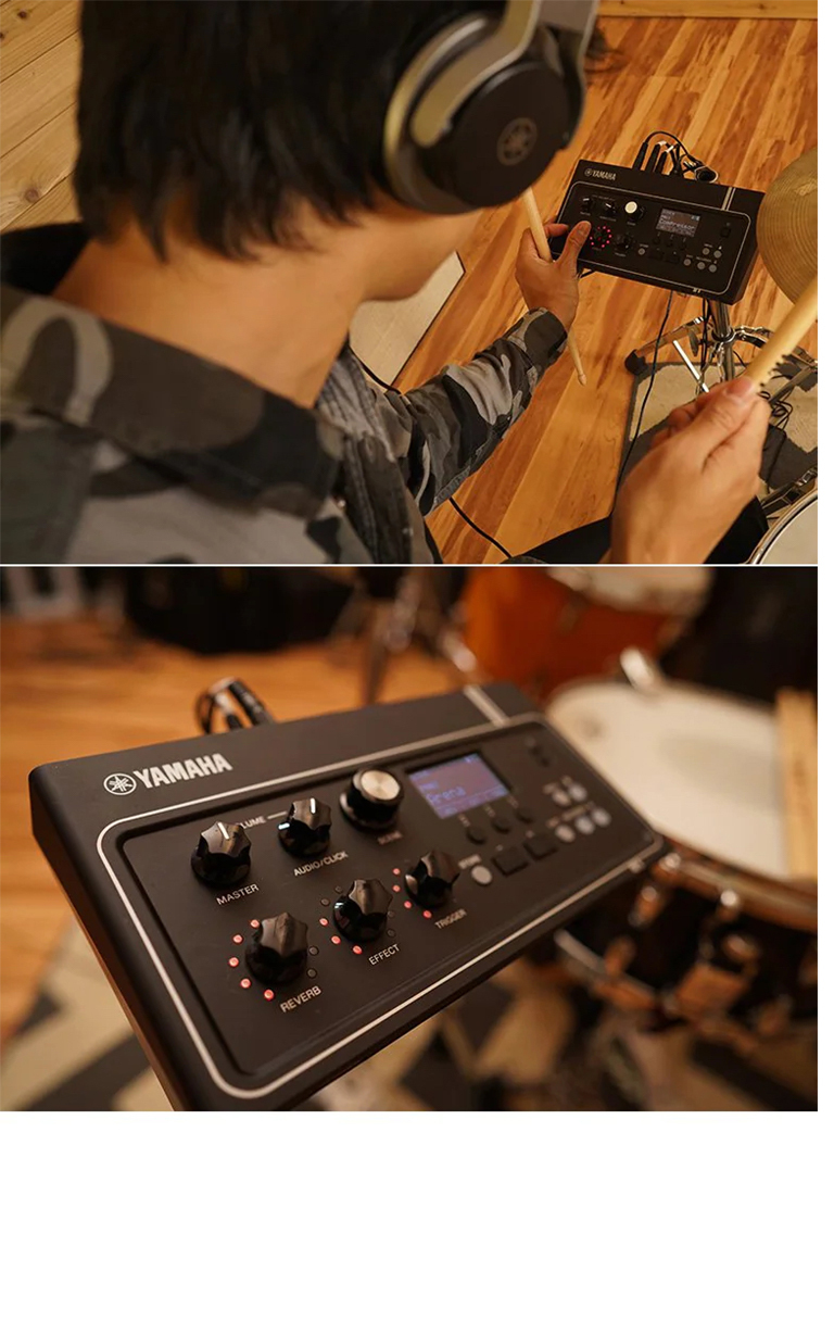此外,透過使用觸發感應器,將大鼓聲音與 PCM 聲源結合,把創造出的音感範圍擴大到極限。
