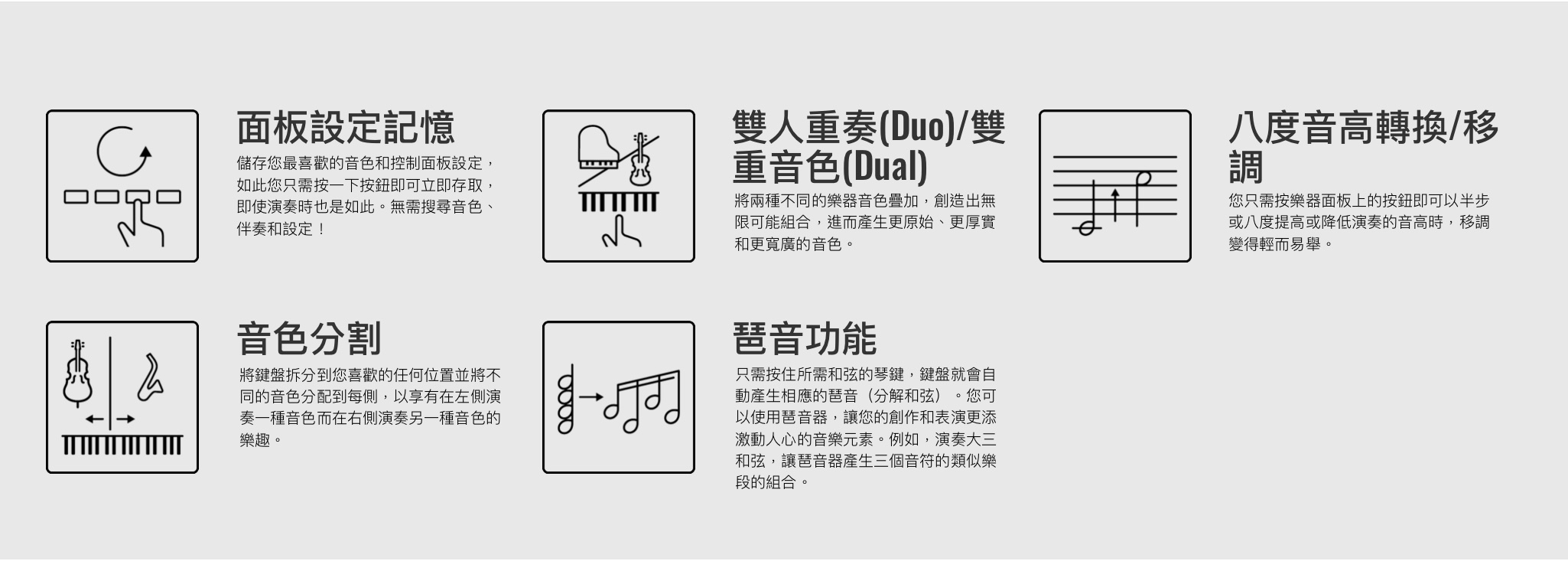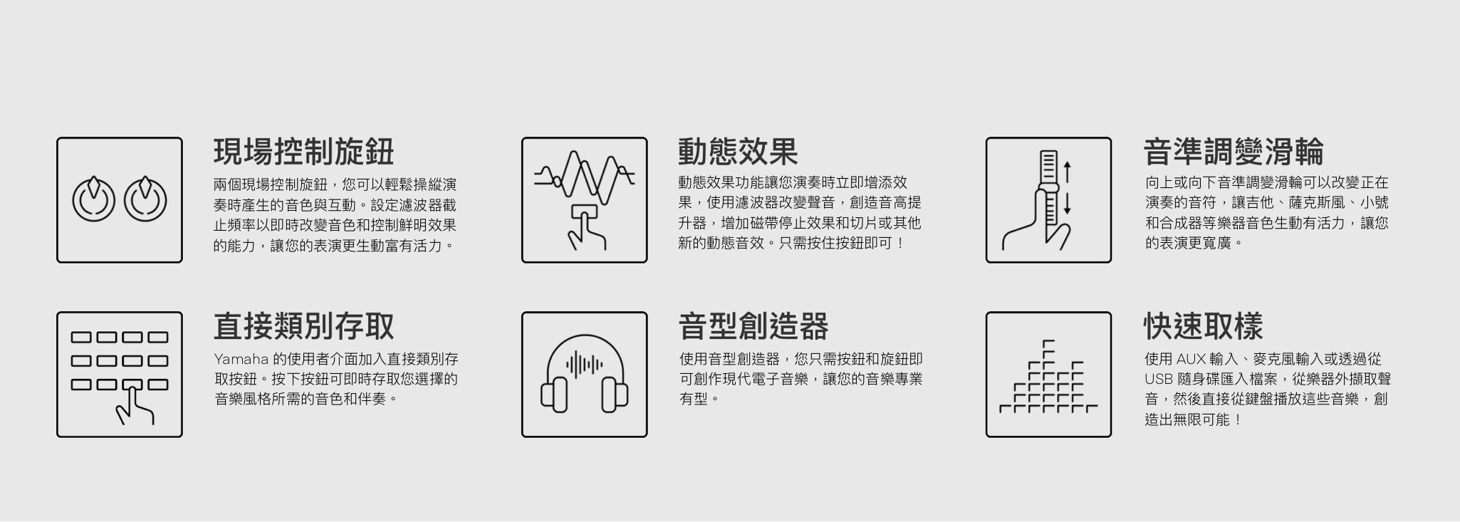 最佳化的控制面板讓您可以快速輕鬆存取音色、伴奏和功能,讓您可以將時間集中於創作之上。