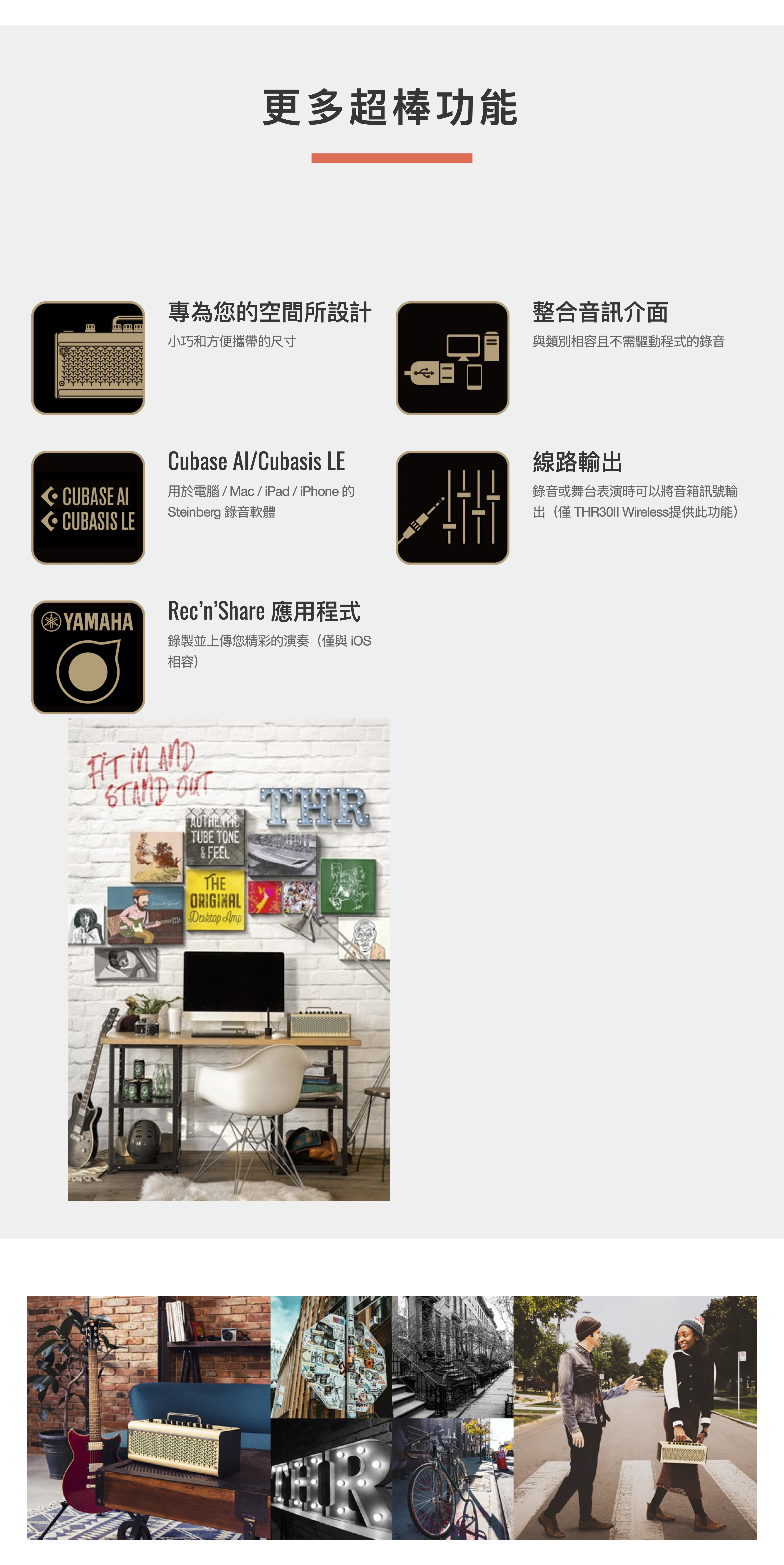 • Bluetooth® 支援音訊播放、使用專用App 『THR Remote』編輯音色…等等功能。