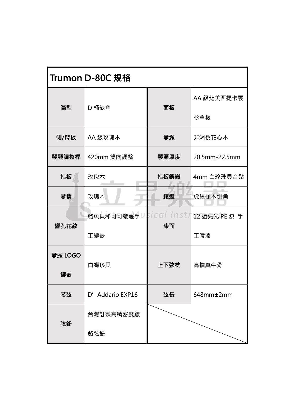 雲杉玫瑰木【經典首選】 雲玫經典搭配為吉他樂手熱衷配置,而楚門吉他力求為您打造一款音色清亮持久,溫暖雄厚的出色指彈力作——80系列。楚門80系列面板使用的是北美西提卡雲杉,具備清亮的音色和廣域的動態表現,西提卡開聲後,會有著更直接而強烈的聲音反饋,爆發力十足。而玫瑰木,音性飽滿,低音渾厚,音色具備立體的多層次感,在快節奏曲風中,低音震懾人心。西提卡雲杉和玫瑰木的經典組合,相得益彰、共振和諧。