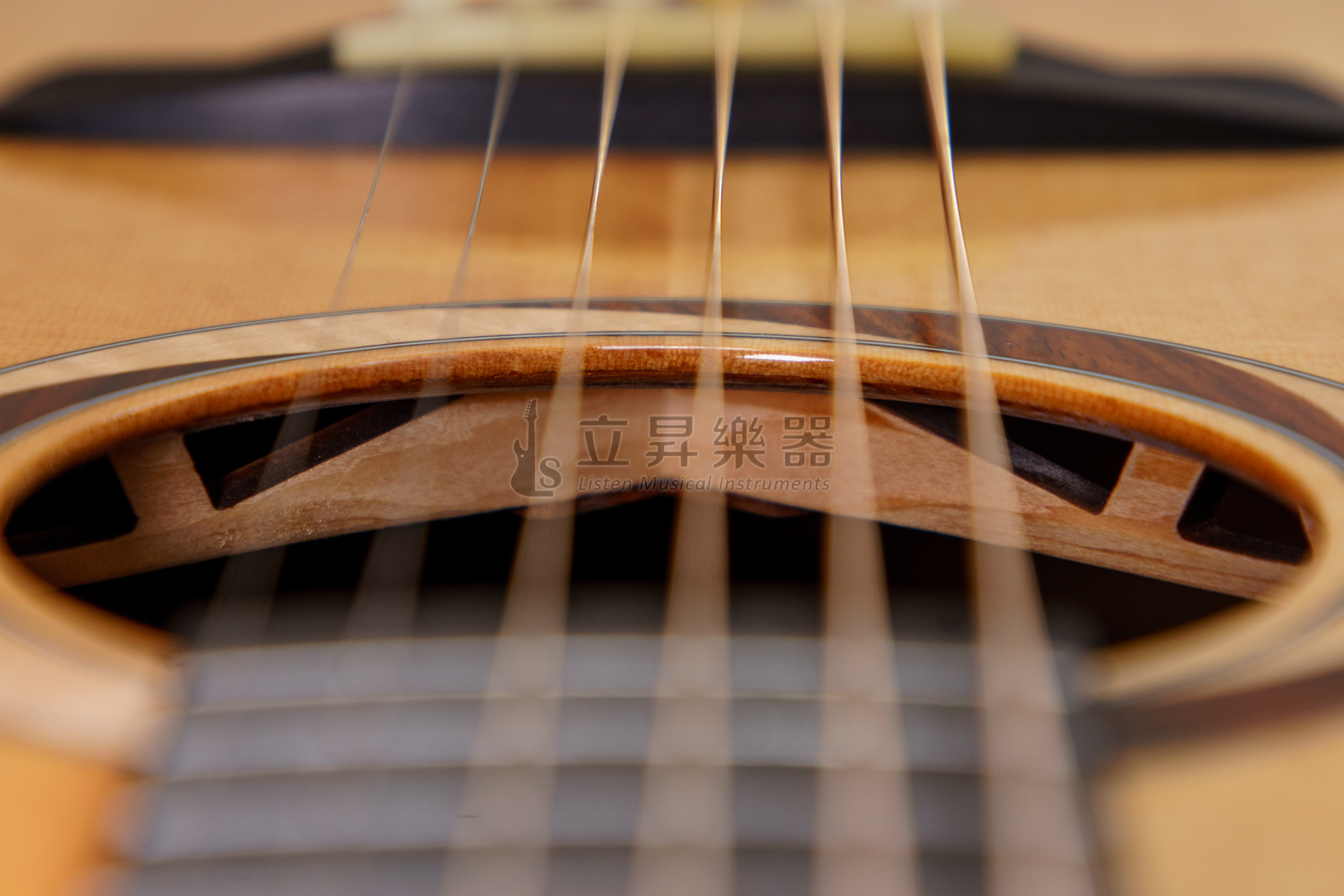 能減輕吉他整體重量加強震動共鳴度,拱橋狀立木設計,增加立木的彈性。
