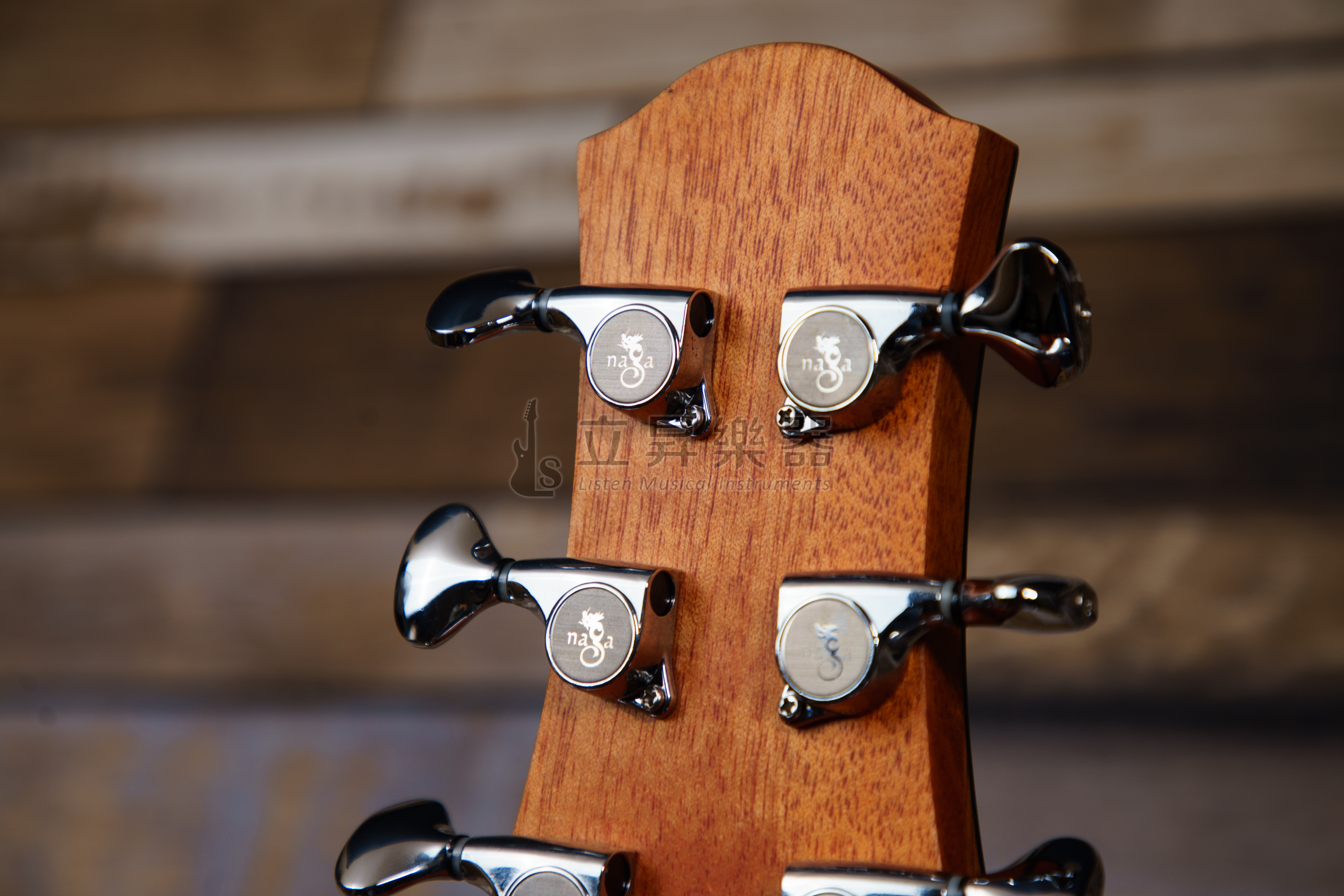 琴頭:玫瑰木貼面+白貝LOGO